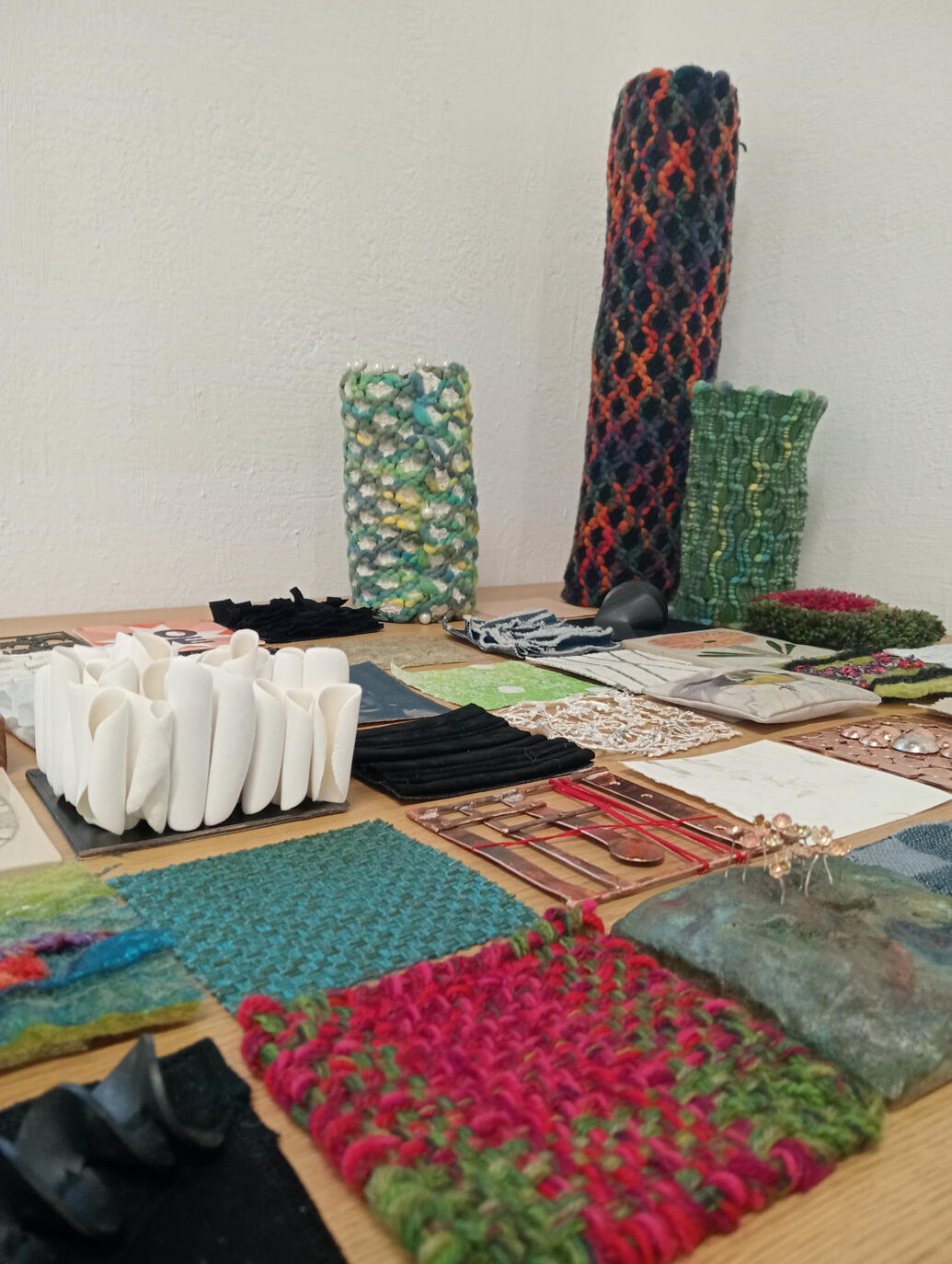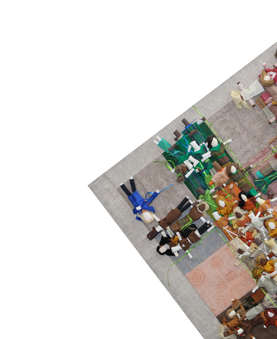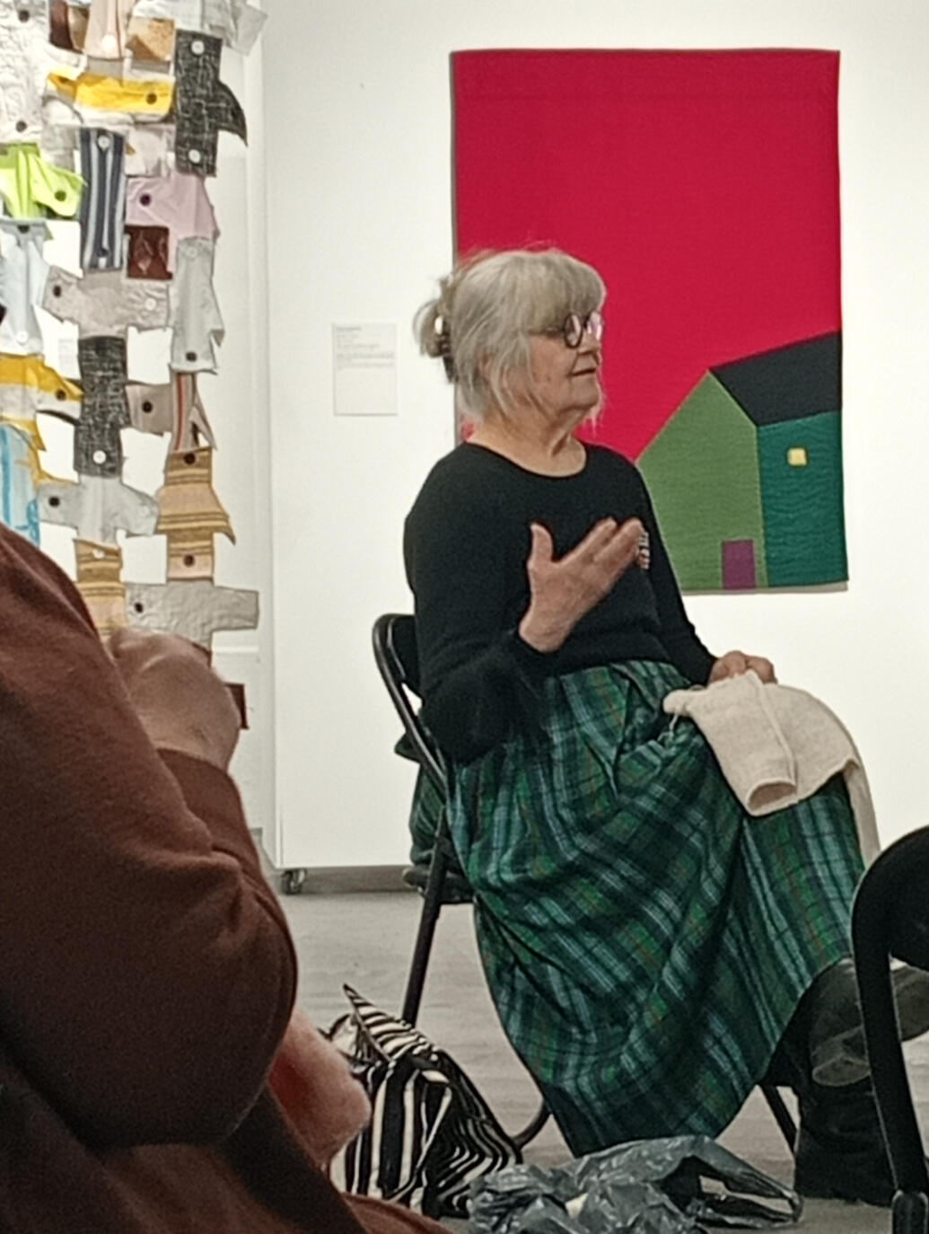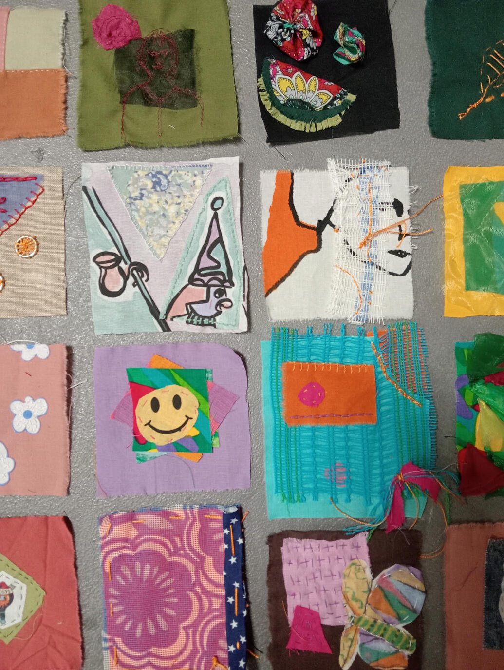 14.2.2026 TILKKUILU – työpajassa liitettiin näyttelyvieraiden tekemiä tilkkuja yhteiseen teokseen. Erilaisia tilkkuja kertyi yhteensä 200! Taito Pirkanmaa & Näpsä