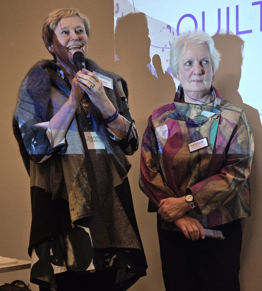 16.1.2026 SymposiumSymposiumiin kokoontui kansainvälisiä asiantuntijoita, taiteilijoita ja tutkijoita, jotka tutkivat inspiroivien esitysten kautta tekstiilien, käsityötaidon, älykkyyden ja hyvinvoinnin välisiä yhteyksiä.Nanna Aspholm-Flik ja Dr. Kristine Scherer, kuva: Anu Junes-Kähkölä