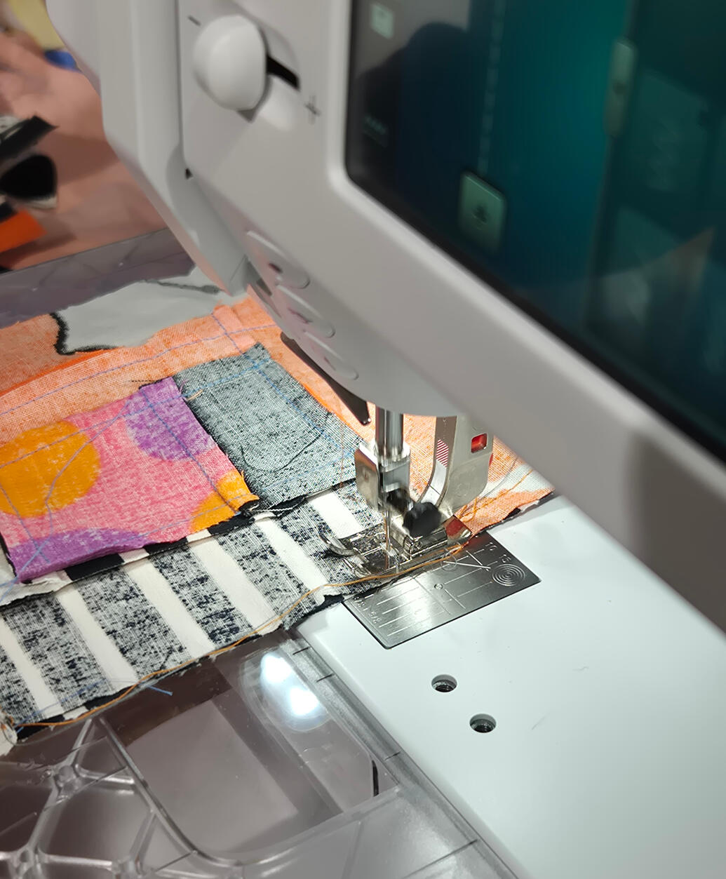 20.-21.1. 2026 TilkkutyöpajaTyöpajassa oli mahdollisuus ommella tilkkuja myös ompelukoneella.Anu Junes-Kähkölä, KM, tekstiilitaiteen opettajaTyö: Anu Junes-Kähkölä