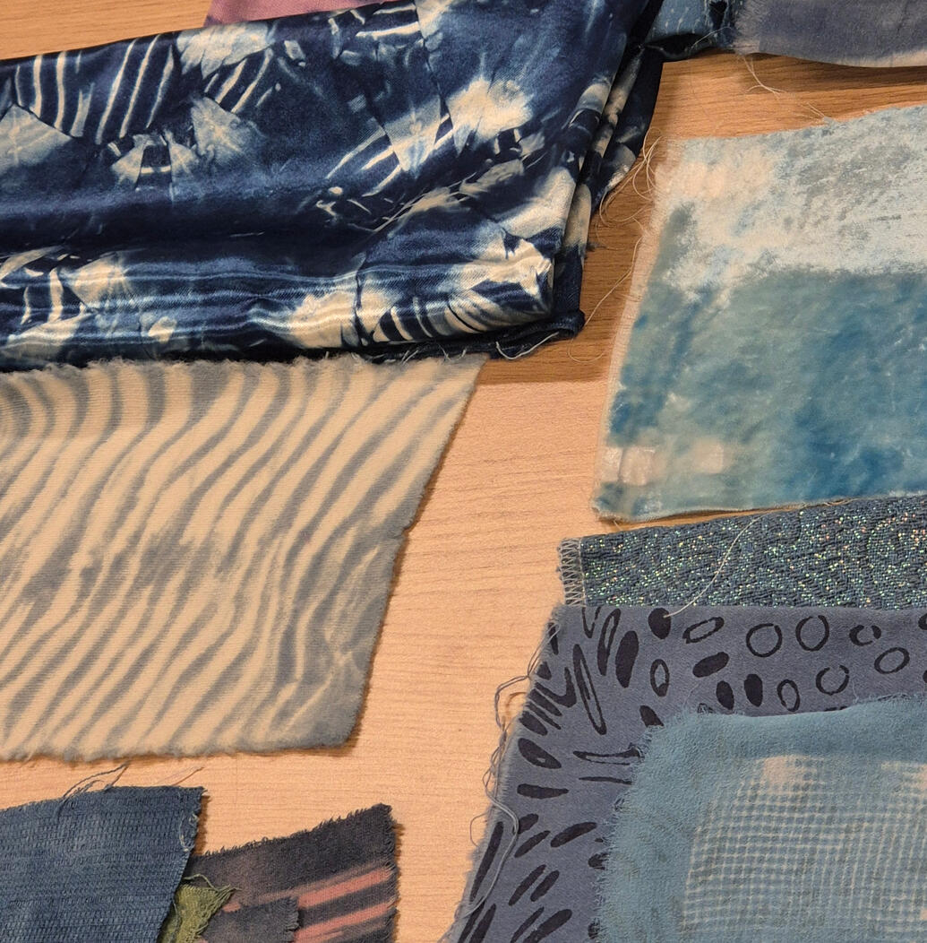 Näyttelyn vierailijat pääsivät seuraamaan indigovärjäystä väriliemen eli kyypin valmistamisesta värjäykseen. Innokkaimmat pääsivät myös itse kokeilemaan värjäämistä. Päivä oli täynnä mielenkiintoisia keskusteluja indigosta ja muista luonnonväreistä, kiehtovista perinteistä ja käsillä tekemisen tärkeydestä.Teos: [Välitila Studio] | Pirita Lauri Kuva: Nicole Gülch