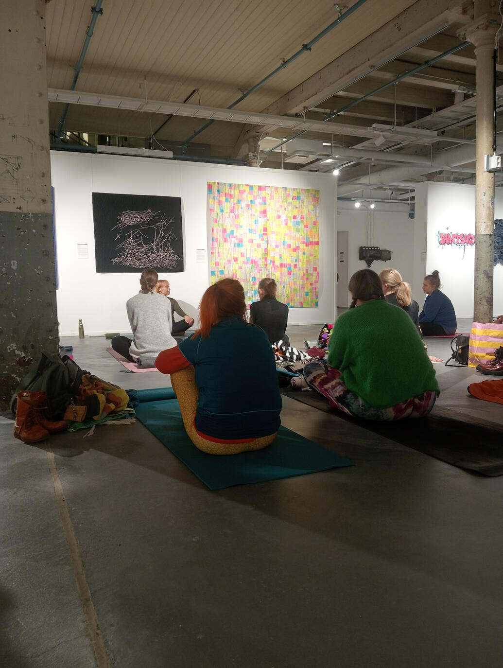12.2.26 Joogaa teosten keskellä, yleisöltä suljetussa tilassa