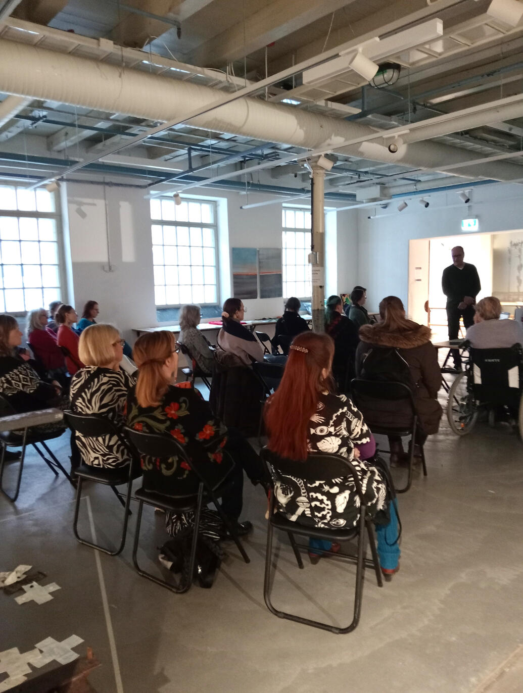 12.2.26 Joogaa teosten keskellä, yleisöltä suljetussa tilassa